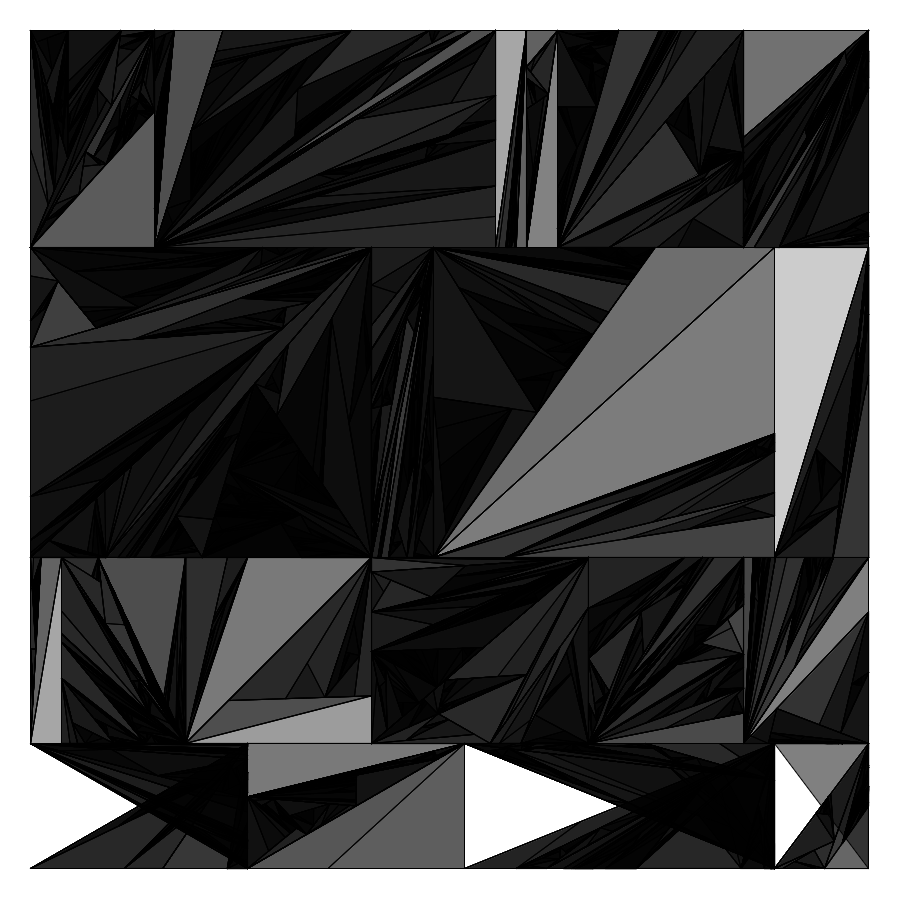 I love recursivity. It is a purely software phenomenon that lets you write very small programs that can turn into very large and unpredictable pieces. I love how recursive generative algorithms can produce pieces that are so different from each other and yet clearly all part of the same series.