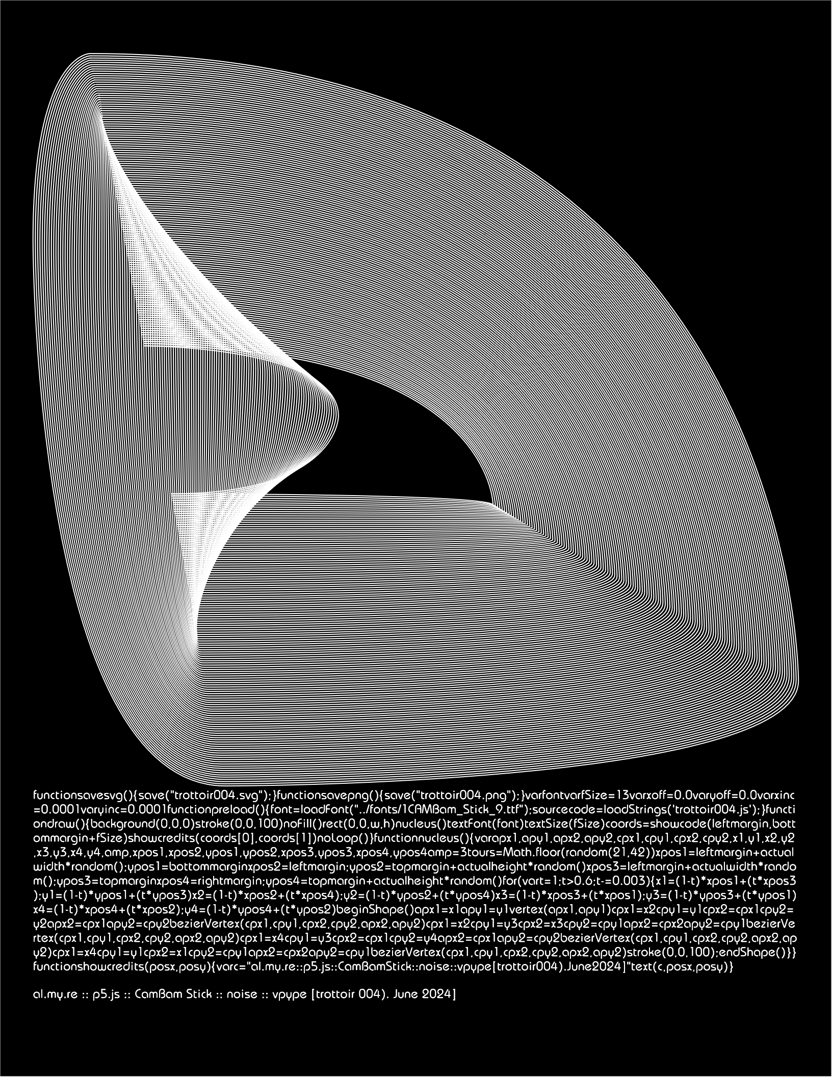 almyre, aka Benoit Baudry, is a Professor of Computer Science and a generative artist based in Stockholm. In 2019, he founded the re|thread collective, a platform for exploring the intersection of software and art through generative projects, plotter art, the restoration of digital artworks, and collaborative NFT initiatives such as folkfigur.