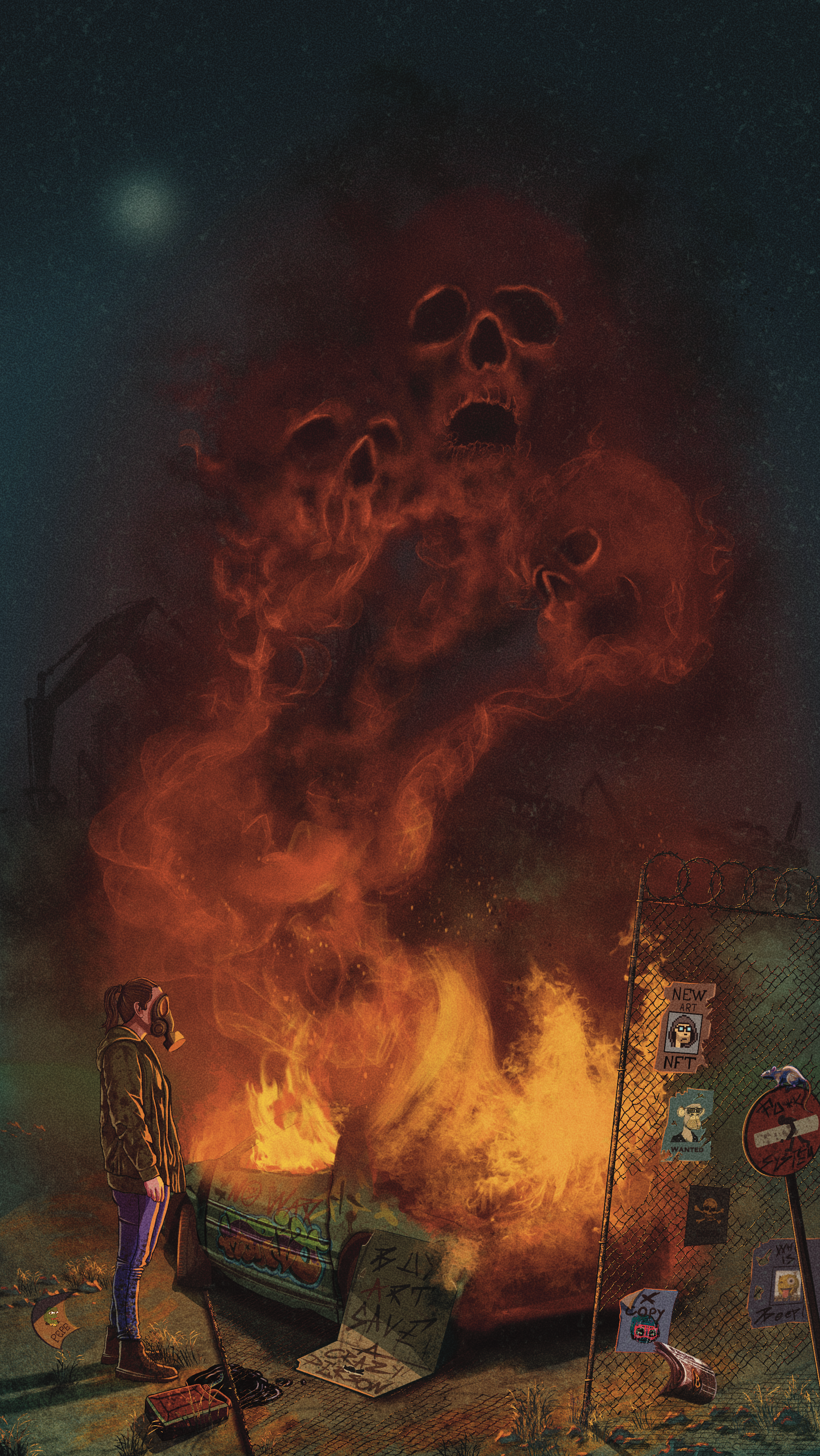 I have a deep interest in dystopian narratives. Themes such as humanity's conflict with nature, the psychological impact of political systems, trauma, and chaos push me toward creation. Whenever I witness humanity revealing its darker side, I feel a strong urge to produce art. Chaos. Dystopia. A dark future… Nature seems to have abandoned us. And humanity appears condemned to loneliness within the crowd.