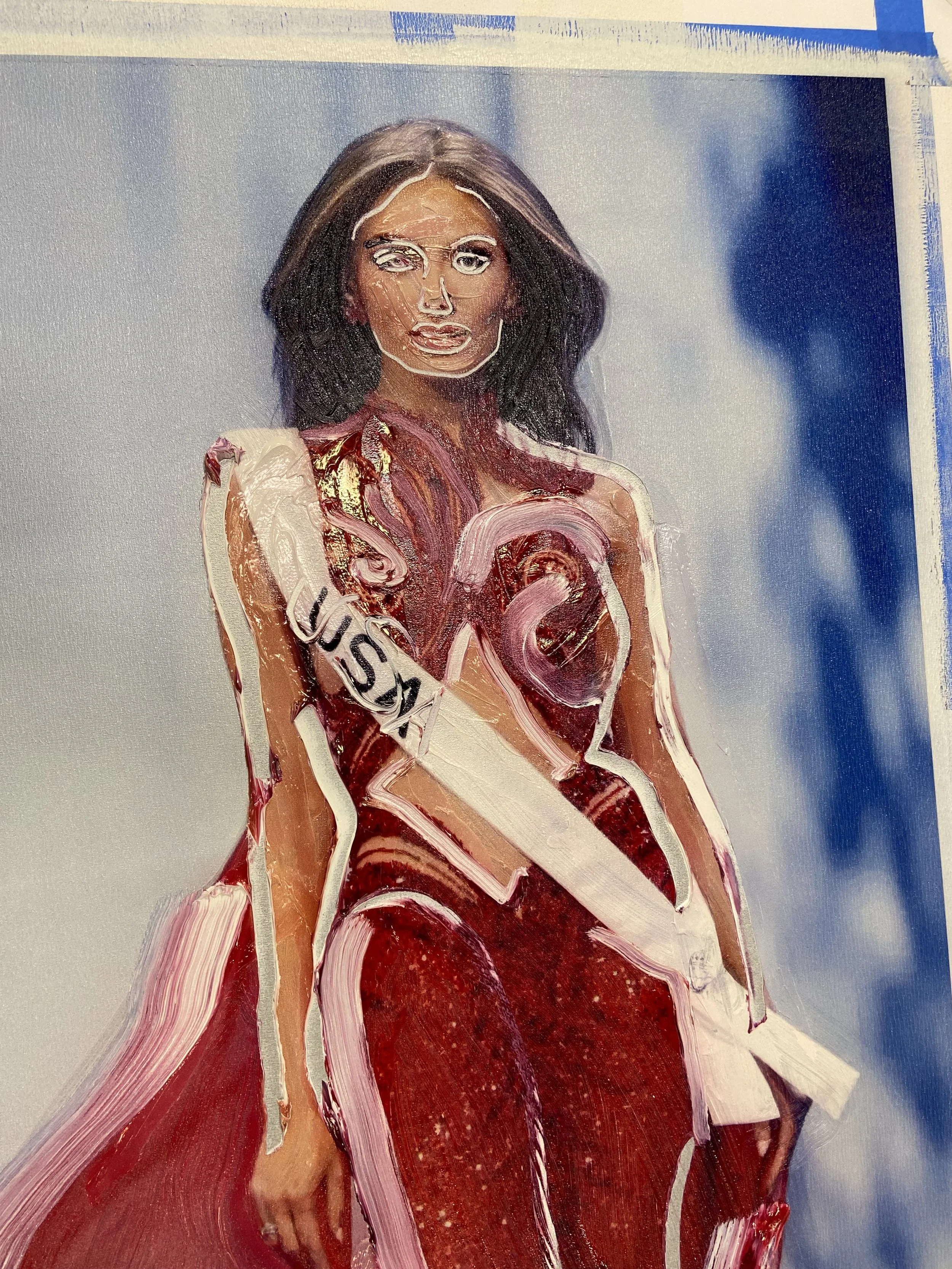 I am using the same conceptual and technical process of physical photo manipulation in paint to explore AI-driven apps that make us look younger, and also those that turn any photograph into deepfake pornography. Both are crucial conversations and are already resulting in powerful, if somewhat disturbing, paintings.