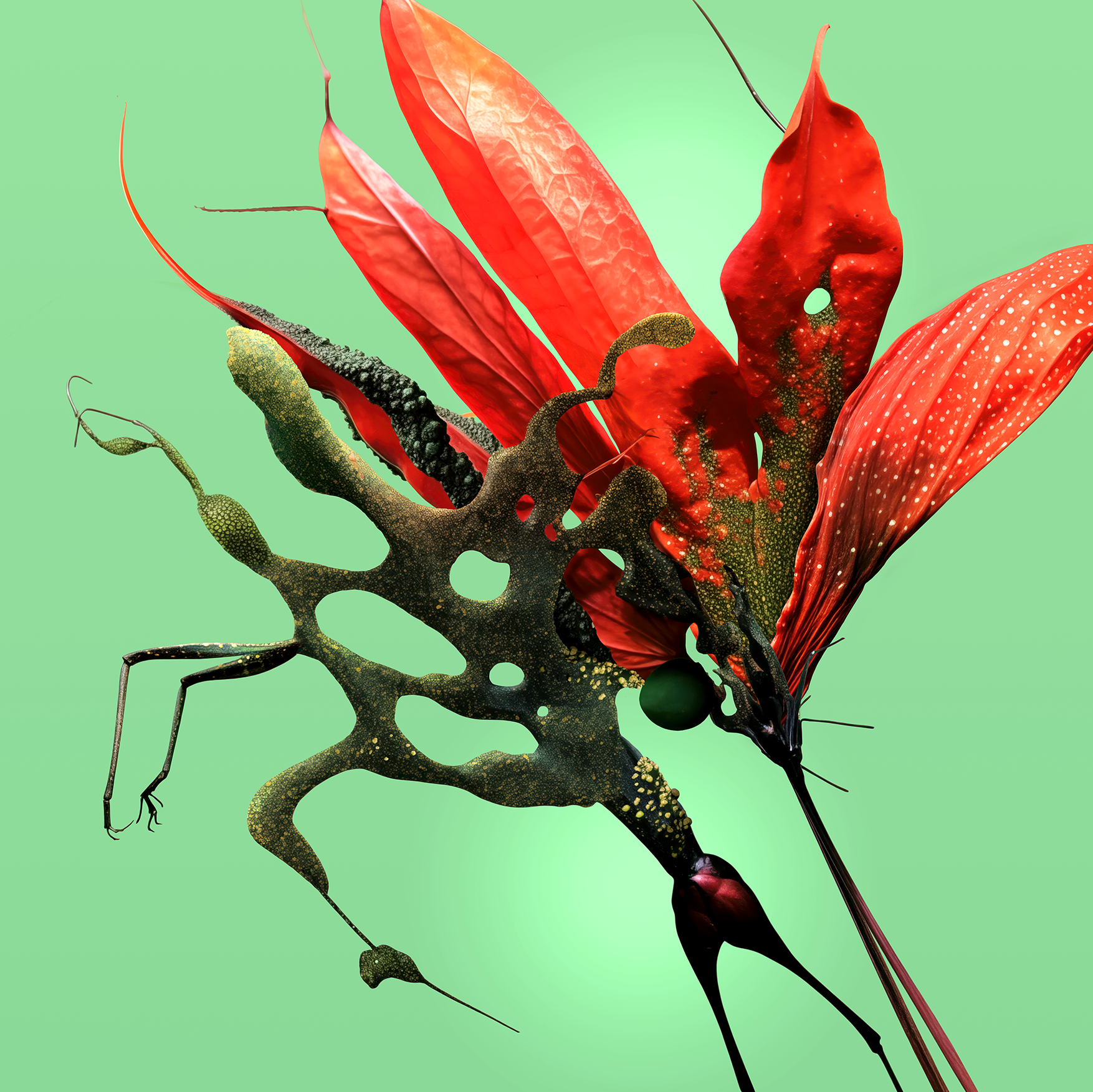 I'm obsessed with nature documentaries and space. I love the weird other worldliness of plants, insects, micro organisms and deep sea creatures. I’m naturally drawn to observing and thinking about life on micro and macro scales and how it all interconnects. Some of my recent images are like collisions and mutations of plants and insects, neither one or the other but some kind of hyper surreal version of the two. I like ideas in Surrealism and Dadaism, ideas that pull seemingly abstract or disconnected thoughts together to create something new, weird or absurd.