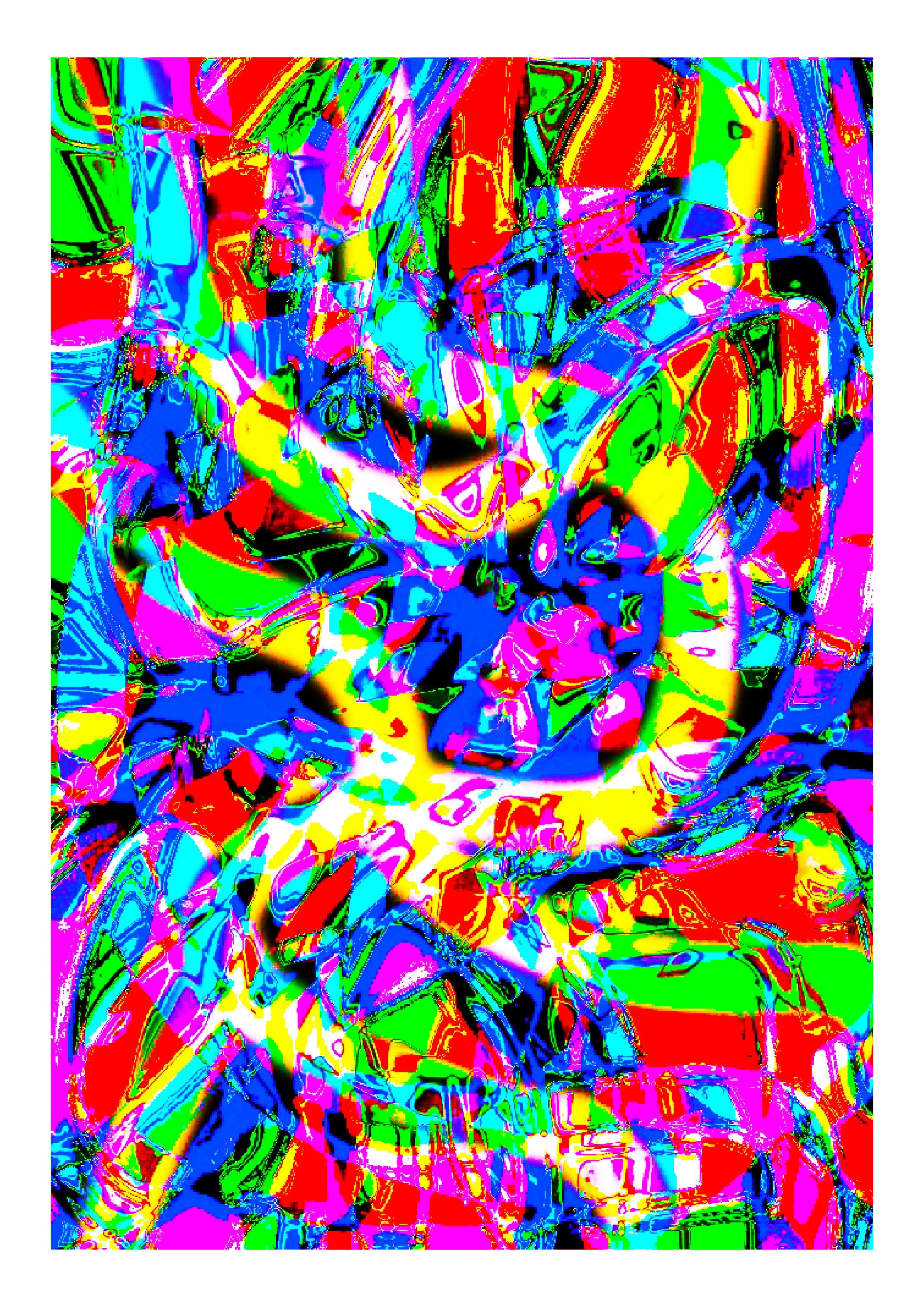 This mainly applies when I am creating art using pixel-based apps, which, as mentioned, allow more intuitive approaches. The “inside” of this is usually a concentration of many decisions: a flow of visual experiments and decision making, accepted or rejected according to aesthetic choices. In this flow the decisions can be very small adjustments, but of course in art every adjustment is crucial. The results are often complex abstract images. Afterwards, I realise it would be difficult, near impossible, for me to reproduce the artwork: I take this as a good sign, that I have indeed been inside a process unique to a particular piece.