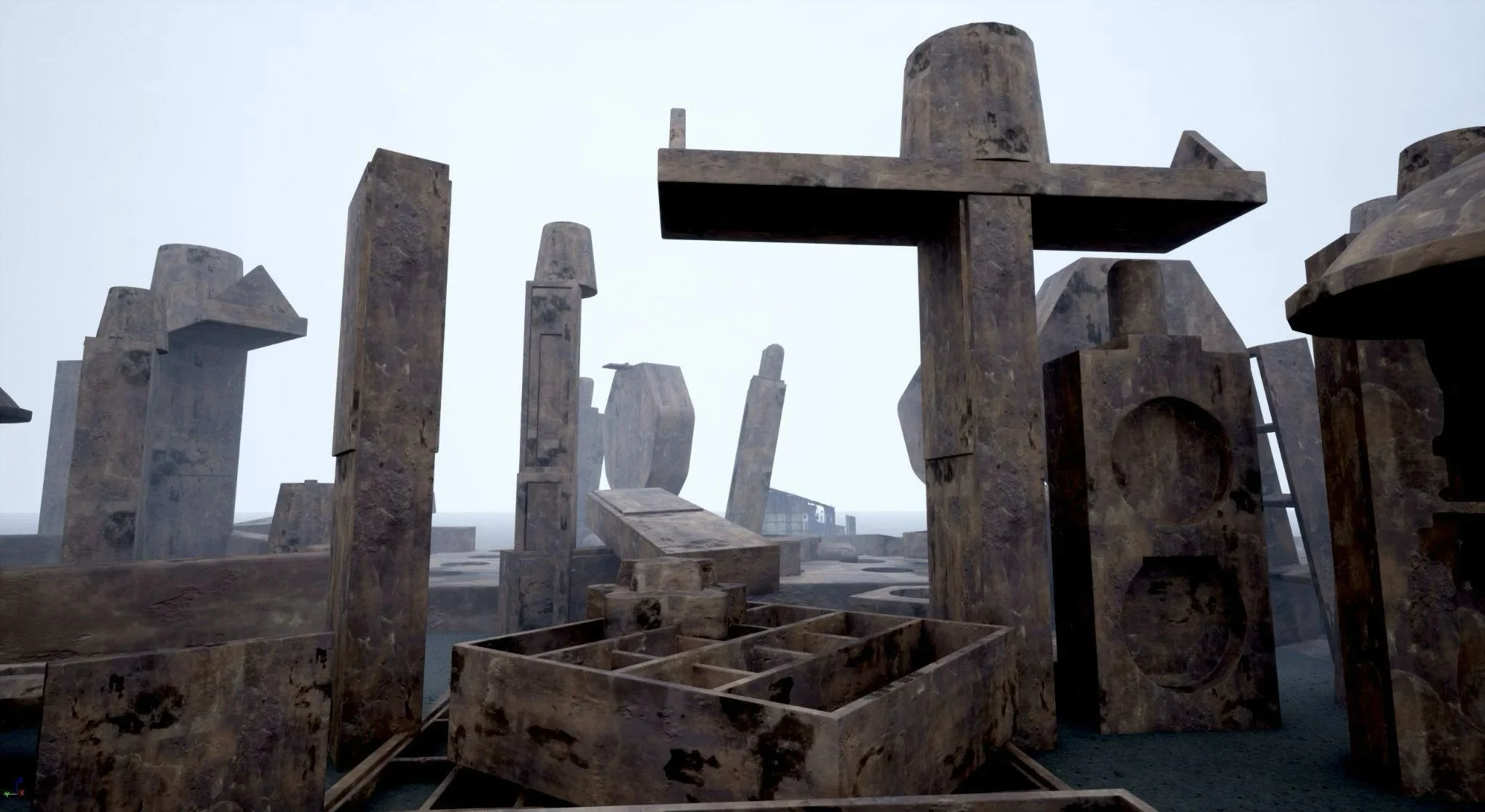 Studio Visit, a surreal, interactive environment created with sculptor and playwright Will Ryman in Unreal Engine, invited audiences into a spatial rendering of the artist’s imagination. Using motion capture and 3D scanning technologies, we reconstructed Ryman’s studio—now reanimated by his sculptures, which appeared to come alive in strange, theatrical ways. The result was a dreamlike encounter with creative process, distortion, and materiality.