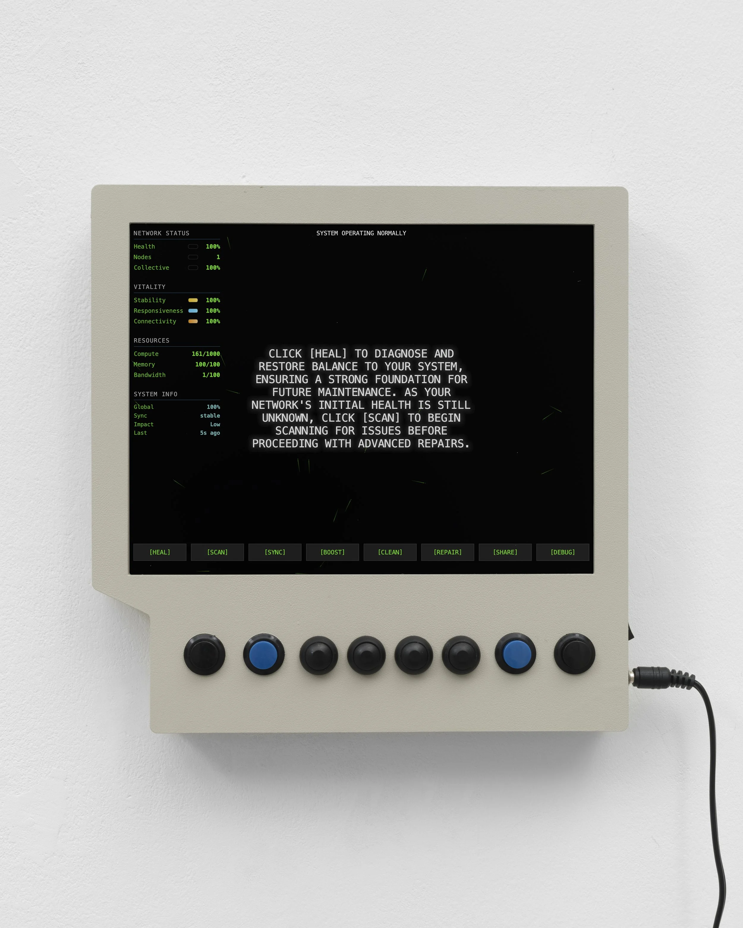 Jonas Lund, Network Maintenance, 2025, PLA, custom hardware, software, 25x25x5cm.