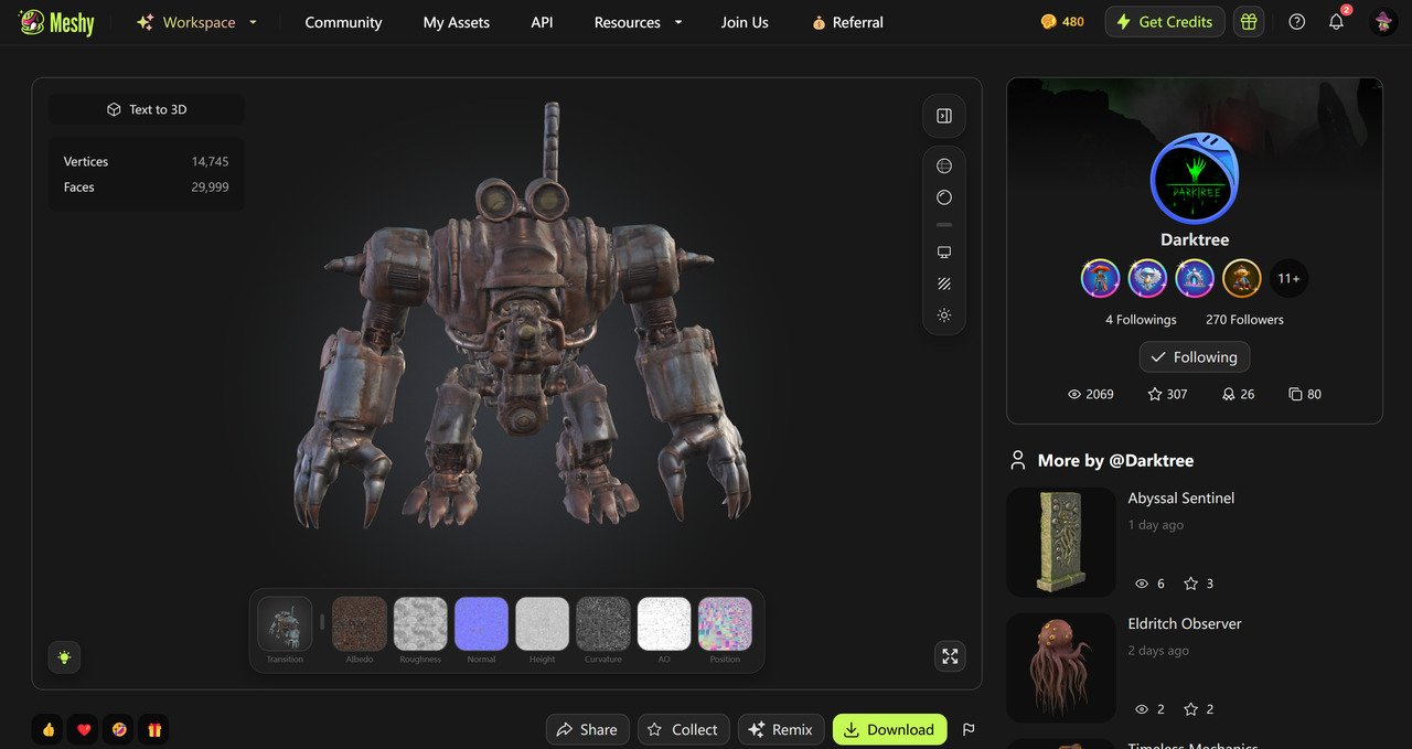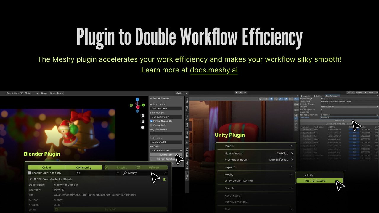 For tutorials, feature updates, and artist showcases, visit the community and follow Meshy on Youtube.