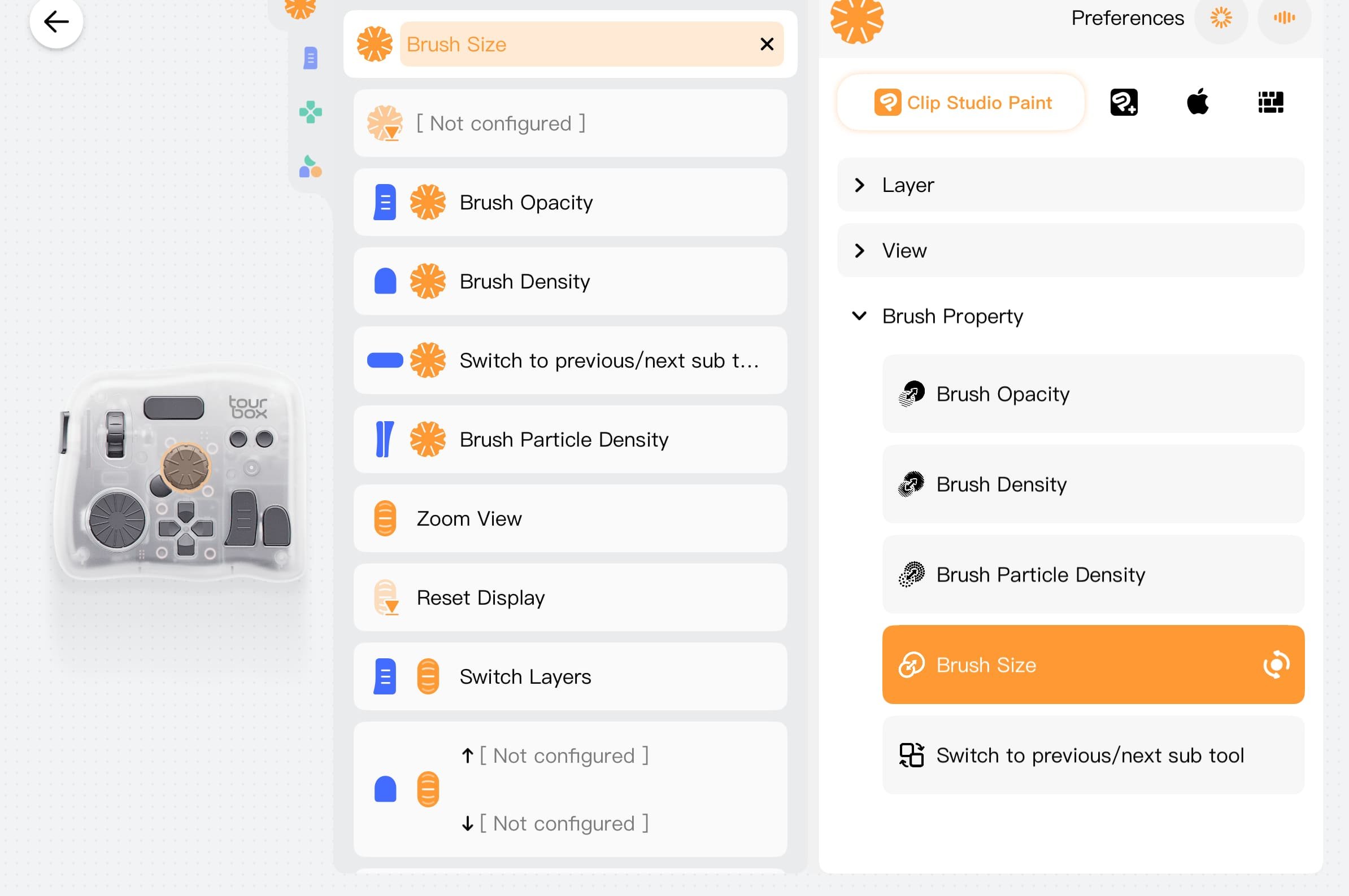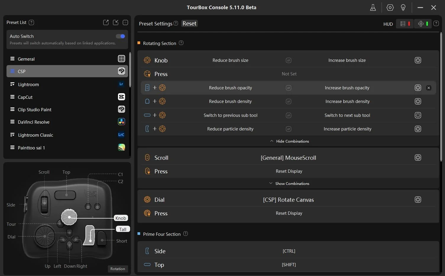 One complaint: TourBox does not seem to have deep built-in support for CSP. For apps like Photoshop and Lightroom, it offers more built-in features. So if you are not familiar with CSP or non-Adobe app shortcuts, the setup can be annoying.
